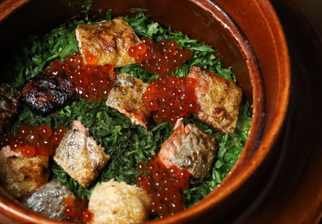 出汁を最大限に生かしたご飯ものも当店のこだわりです。釜全体を一気に加熱し炊き上げます。 お米一粒一粒が立ち、直火ならではの粘り、甘み、香りが際立ったごはんの本当のおいしさをお楽しみください。